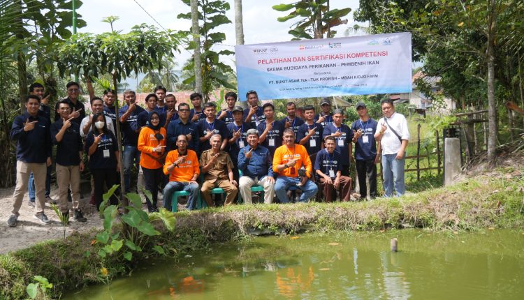 MUARAENIM,BS – PT Bukit Asam Tbk (PTBA) bekerja sama dengan Rumah BUMN Bukit Asam, TUK PROFISH, Mbah Kidjo Farm mengadakan pelatihan dan sertifikasi kompetensi skema budidaya perikanan-pembemih ikan.
