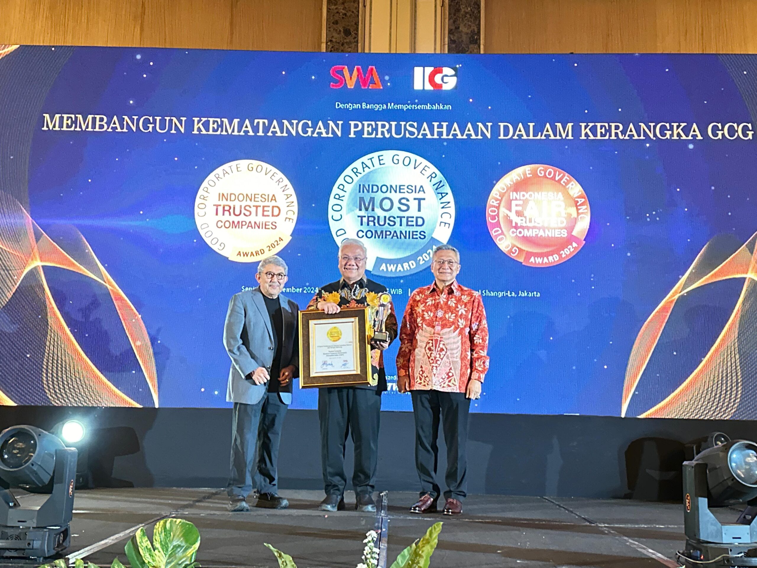 JAKARTA,BS – Bank Sumsel Babel kembali menorehkan prestasi gemilang dengan meraih penghargaan “Trusted Company” dalam ajang Corporate Governance Perception Index (CGPI) 2024 yang diselenggarakan oleh Indonesian Institute for Corporate Governance (IICG). Penghargaan tersebut diberikan dalam sebuah acara prestisius yang digelar di Hotel Shangri-La, Jakarta, pada tanggal 25 November 2024.