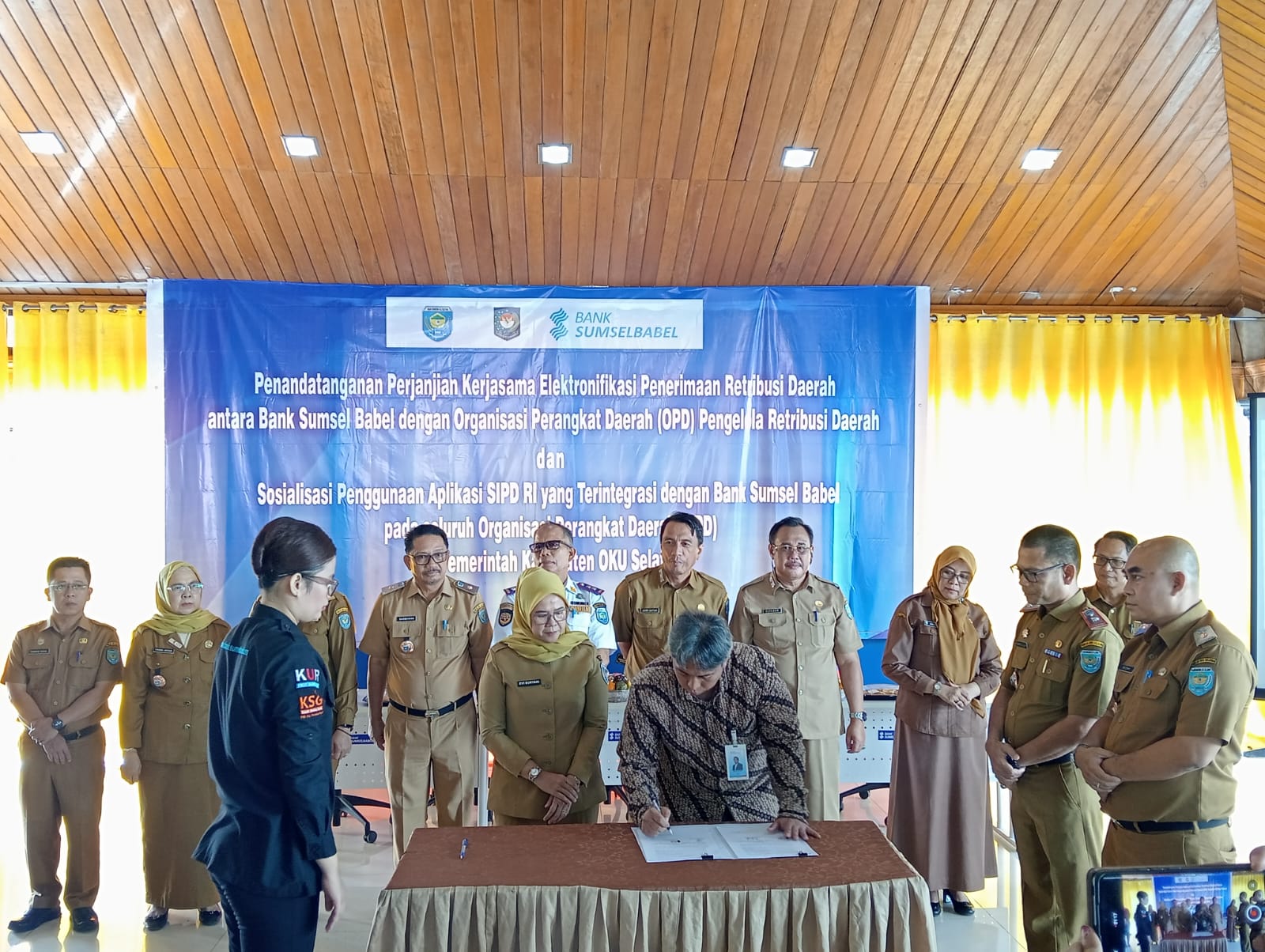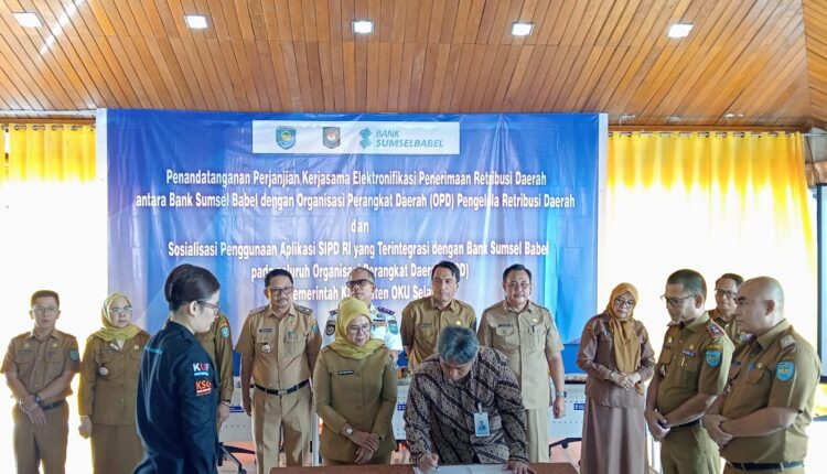 OKU SELATAN, BS — Warga Kabupaten OKU Selatan kini akan merasakan kemudahan baru dalam melakukan pembayaran retribusi daerah. Pemerintah Kabupaten OKU Selatan bersama Bank Sumsel Babel Cabang Muaradua resmi melakukan sosialisasi dan uji coba Aplikasi Sistem Informasi Pemerintahan Daerah – Republik Indonesia (SIPD-RI) Terintegrasi sekaligus menandatangani perjanjian kerja sama (PKS) elektronifikasi penerimaan retribusi daerah, di Aula Pendopo Hotel Samudra, OKU Selatan, pada Senin (29/09/2025).