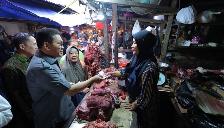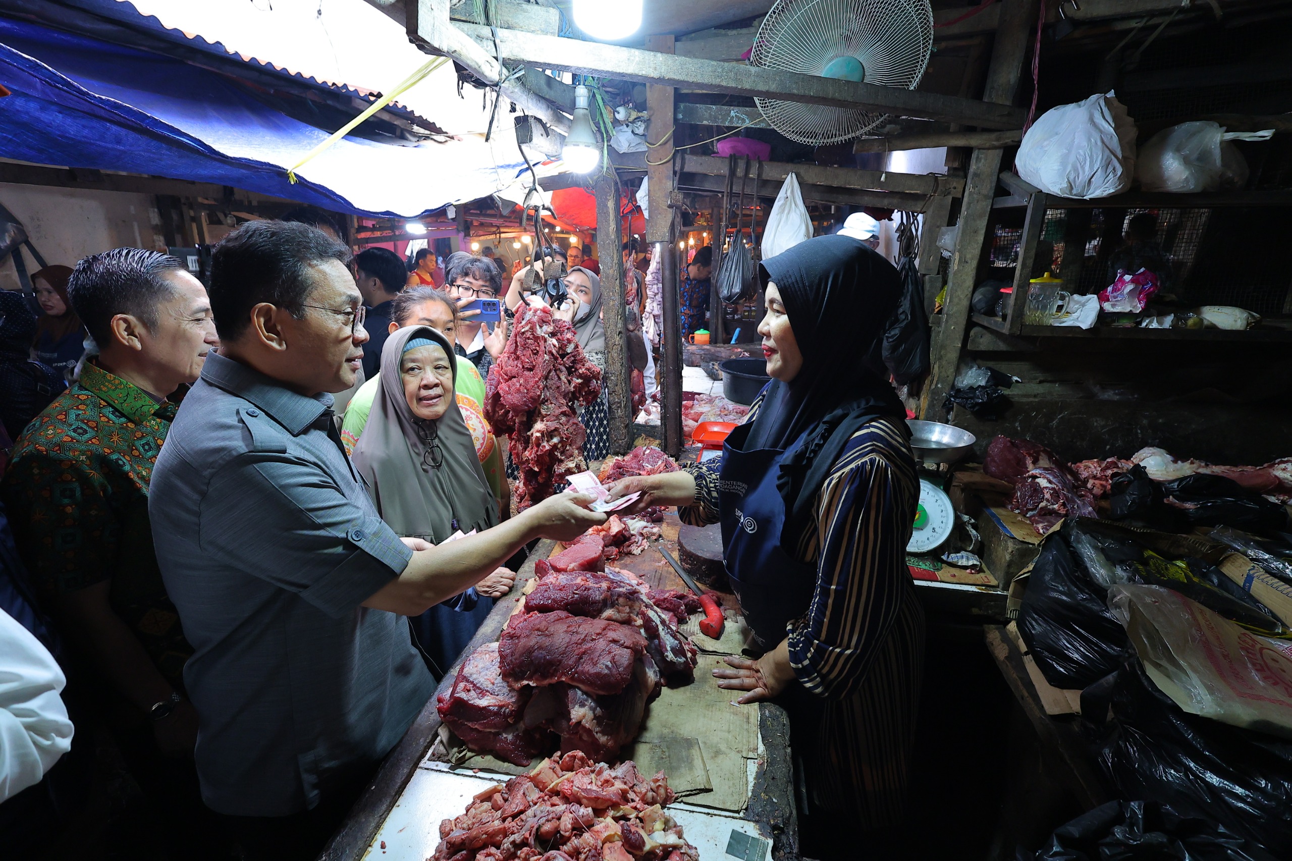 Menteri Perdagangan Budi Santoso bersama Wali Kota Ratu Dewa berkeliling pasar, meninjau langsung sejumlah lapak pedagang, serta berdialog untuk menyerap aspirasi dan mengetahui kondisi harga terkini.